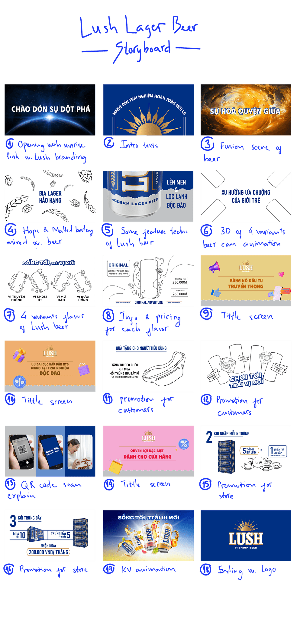 Lush Lager is an entirely new brand that brings a unique fruity flavor to the beer market. The video needs to highlight the distinctive element of this innovative combination between traditional lager beer and the refreshing taste of fruits. It should emphasize how Lush Lager offers a perfect balance, blending the crisp, smooth texture of lager with the vibrant, sweet, and tangy notes of natural fruits. Additionally, the video should showcase the exciting promotional programs designed to attract both consumers and retail stores. By combining the unique flavor profile of Lush Lager with these enticing promotions, the video will effectively capture the attention of both beer enthusiasts and retailers, positioning Lush Lager as a must-try product in the market.