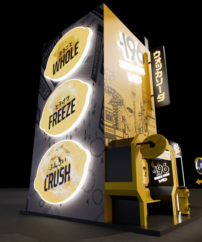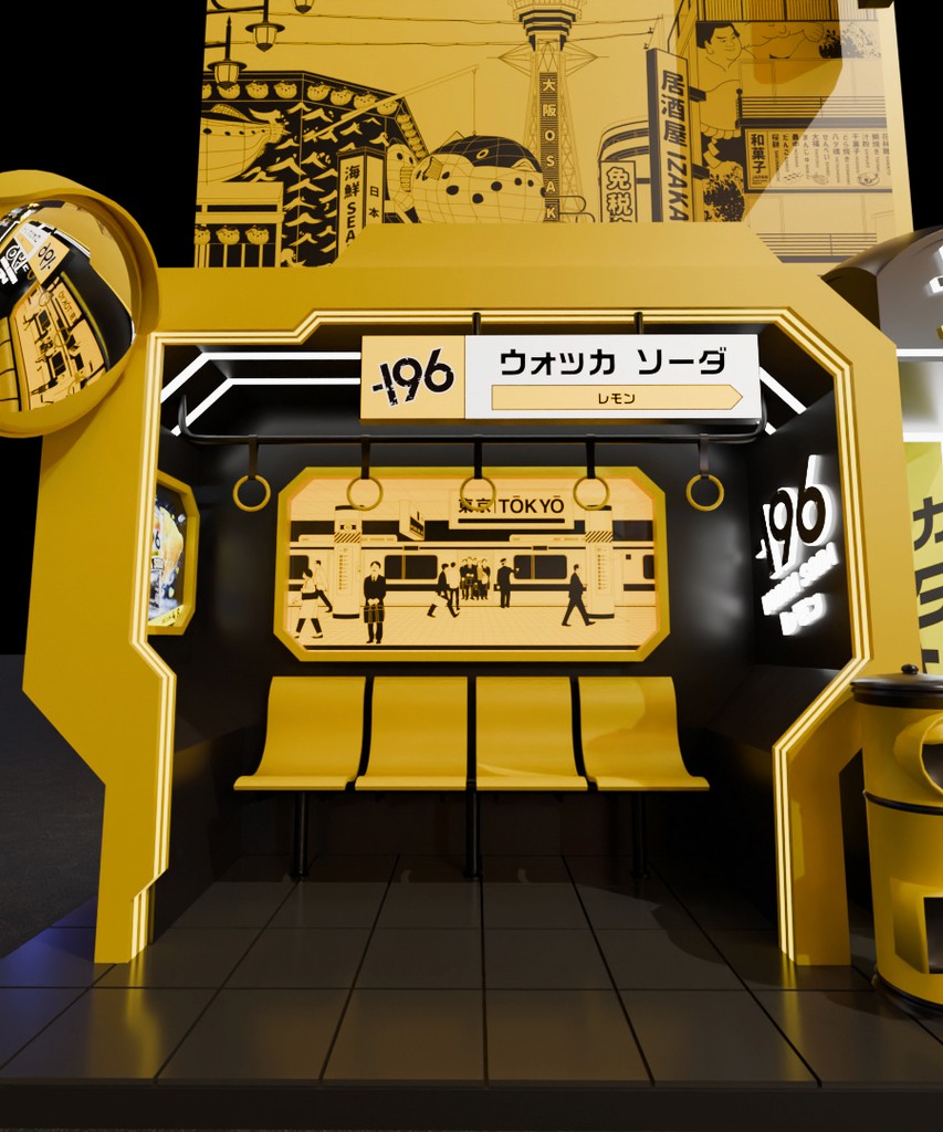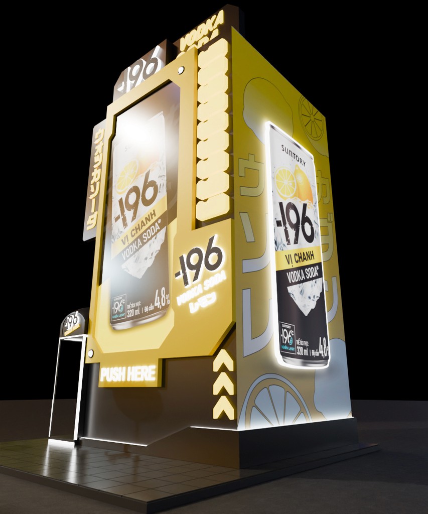 The giant vending machine is an incredibly unique and highly effective way to promote products, especially when placed in crowded locations, as it captures significant attention and creates a strong visual impact. Moreover, it adds a distinctly Japanese flair to the -196 Vodka Soda brand, enhancing its identity and making it stand out in the market. This innovative approach not only draws people in but also leaves a lasting impression, aligning perfectly with the modern and creative image that -196 aims to convey.