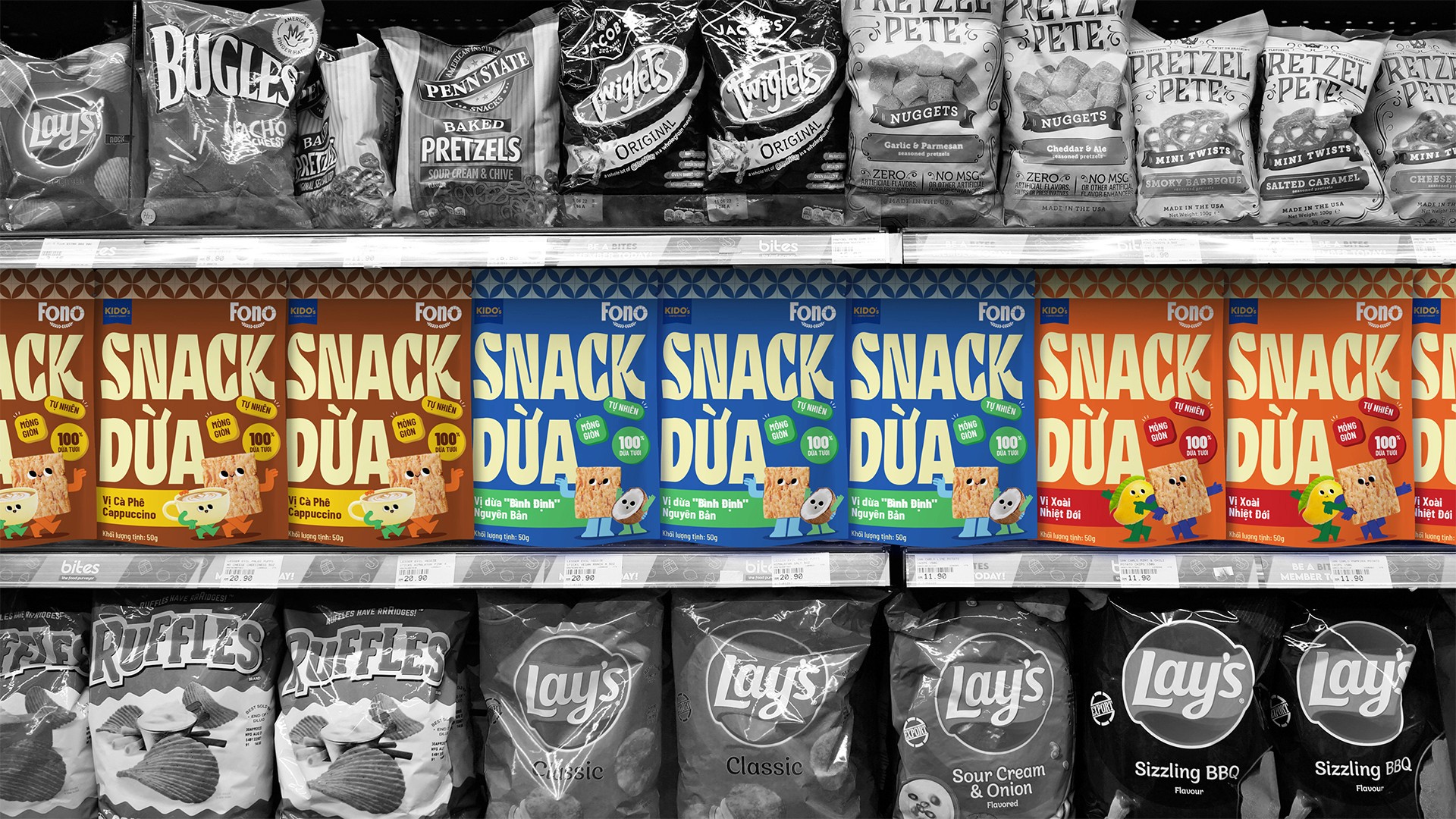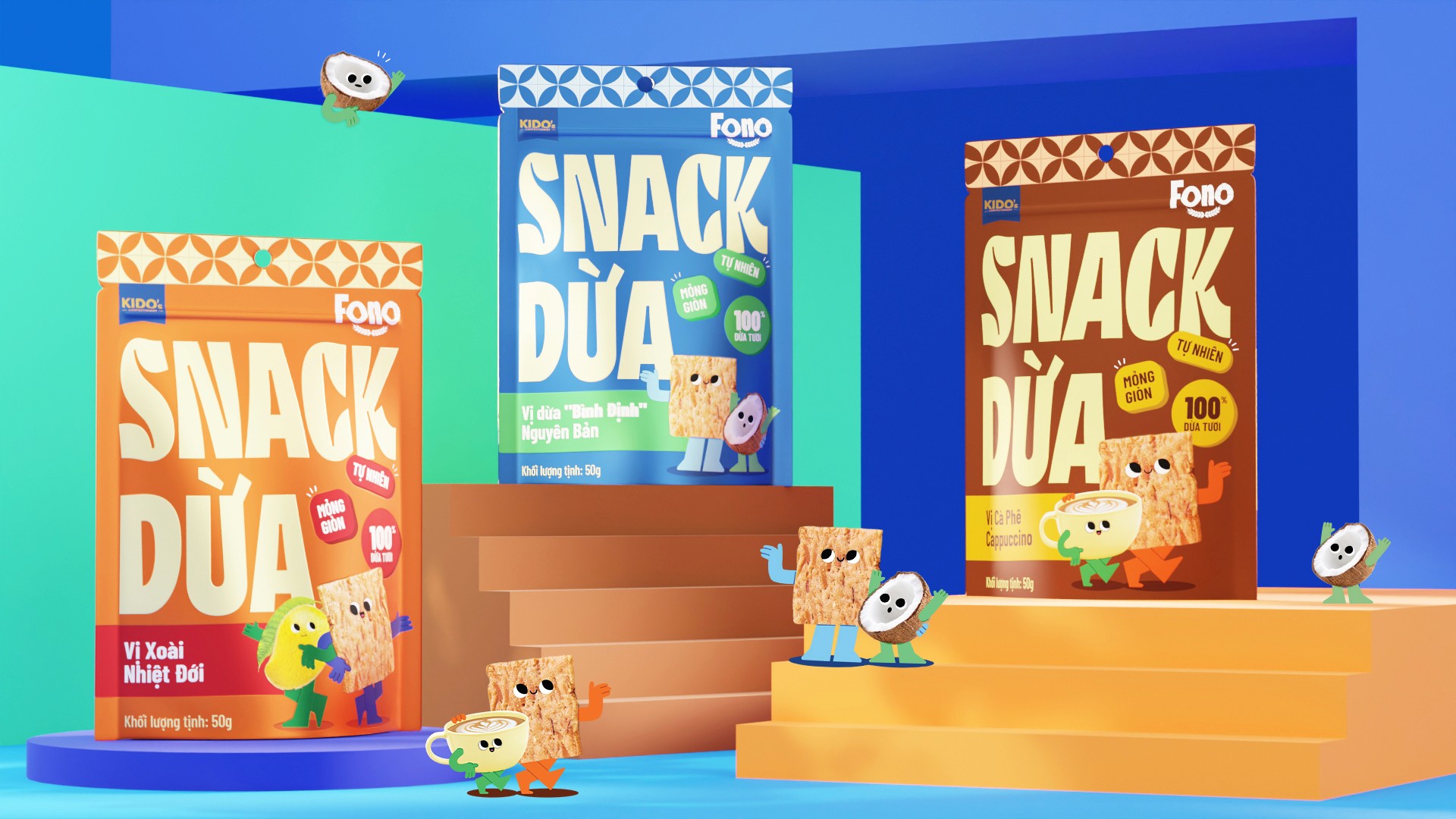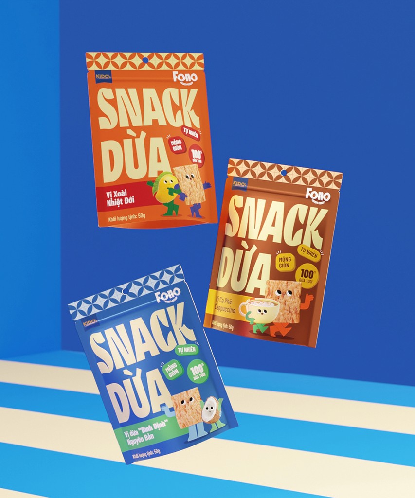 Kido's want to reposition coconut snacks as a modern, youthful specialty product targeting young consumers. The product, positioned as a "new-generation coconut snack," features innovative flavors like Cappuccino Coffee, Tropical Mango, and Original Coconut, with a focus on trendy, convenient packaging.